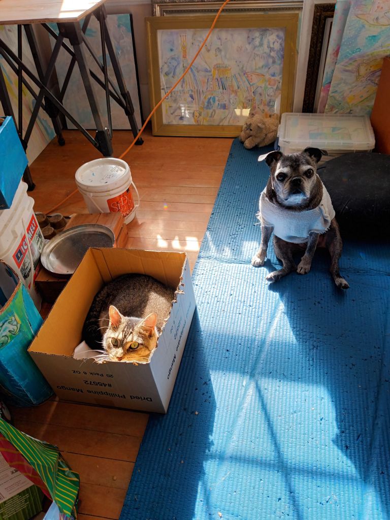 Here are a few of photos of my pets whilst I procrastinated and sat silently in peace and gratitude that I can still paint, still of reasonable mind….and can still climb the stairs to this wonderful studio.