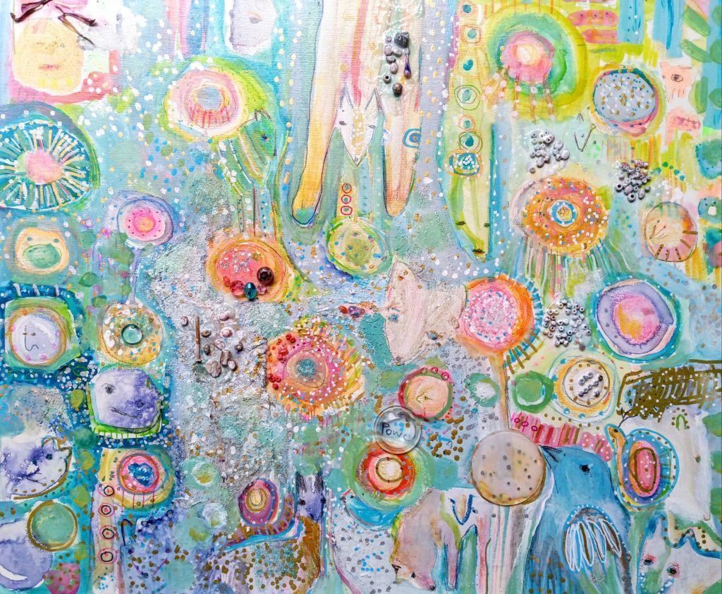 The paintings I make are like tarot readings only with no cards.  Nature spirits appear to put light on different subject matters.