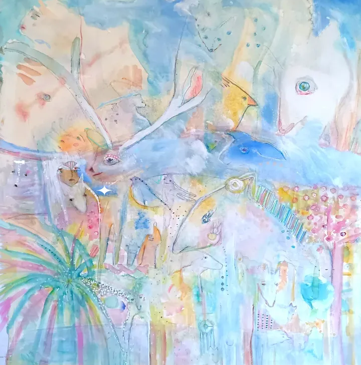 I gather frequencies from other places and timelines when I work with paintings. Pegasai are winged horse and deer. They are part of the Amethyst Breneau Order and along with Inyu cetateans and others, helped to form the IAFW (the interdimensional association for Free Worlds). The IAFW is located on surface Urtha 6520 a.d. footnote: from Voyagers, the secrets of amenti by Ashayana Deane (now E’asha Arhayas), page 264.