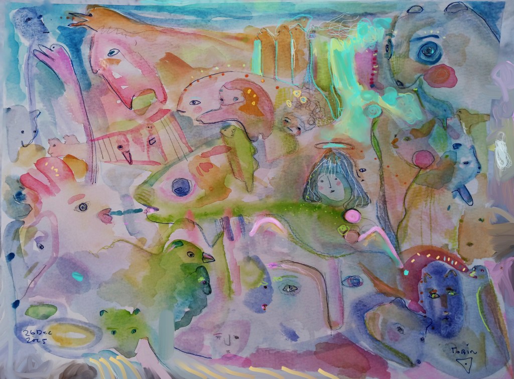 now, the soup pot is steaming. we have managed past the big Christmas holiday of eating festival, and I am back to cleansing and simmering down. An ice storm is forcasted from ten pm tonight until Monday 7 pm, maybe an inch of ice? I had this painting mostly done prior although was working digitally to finish over the last two days after the big Christmas.