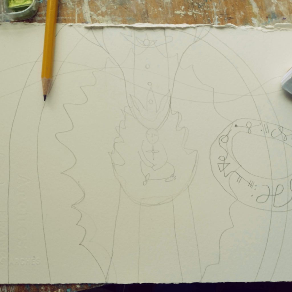 Oh sheepie thou art innocence. She is glancing over at some speaking mouths gossip around cutting someone’s inheritance off. There is a kindred nearby holding a wombat. Wombat medicine is self-acceptance, authenticity, stillness, to find solace within nature and home deep within self. Moose is at hand in this piece. It serves as strength and witness to the fox. The fox had been stealing money that was in the henhouse these last seven years. The standing bear shows the owl and its hoot of deception the way out.